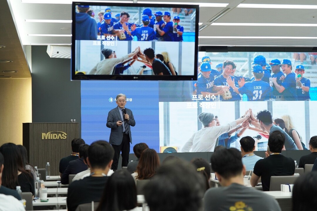 마이다스그룹 계열사 자인연구소는 지난 6월 20일, 마이다스아이티, 마이다스인, 자인연구소 등이 위치한 마이다스그룹 판교 본사에서 ‘2024년 6월 사람경영포럼’을 개최했다. ‘분명, 사람이 있었다’를 주제로 열린 이번 포럼에는 삼성전자, 신세계인터내셔날, 현대케피코, 효성 등 국내 유명 기업 경영진 및 HR 담당자 150명이 신청했다.