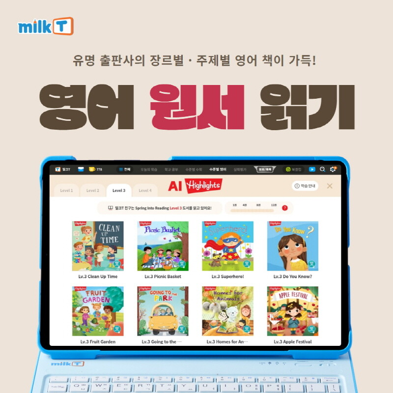 이에 천재교육 관계사 천재교과서가 만든 초등 1위 디지털학습 밀크T초등(2024 한국갤럽 디지털학습 소비자 조사 기준, 브랜드 점유율 1위)은 미국 유명 출판사 도서 중 초등학생 눈높이에 맞는 책을 엄선하여 제공하고 있다.