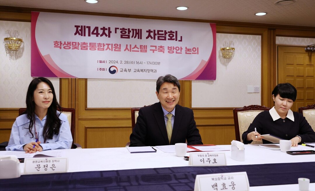 이주호 부총리 겸 교육부장관은 “교실에서 교사가 혼자 모든 학생들을 감당하지 않도록 시스템을 바꿔야 한다”라며, “오늘 차담회를 통해 학생맞춤통합지원의 필요성을 충분히 공감했고, 이를 현장에서 잘 정착시키려면 현재 국회에 계류중인 ‘학생맞춤통합지원법’이 조속히 통과될 필요가 있다”고 결의를 다졌다.