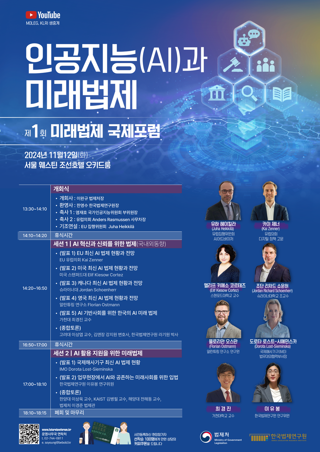 포럼에 관심 있는 사람은 누구나 법제처의 ‘미래 법제 국제포럼’ 전용 웹사이트를 통해 사전 등록이 가능하며, 법제처와 한국법제연구원 유튜브 채널에서 실시간 중계로도 시청할 수 있다.