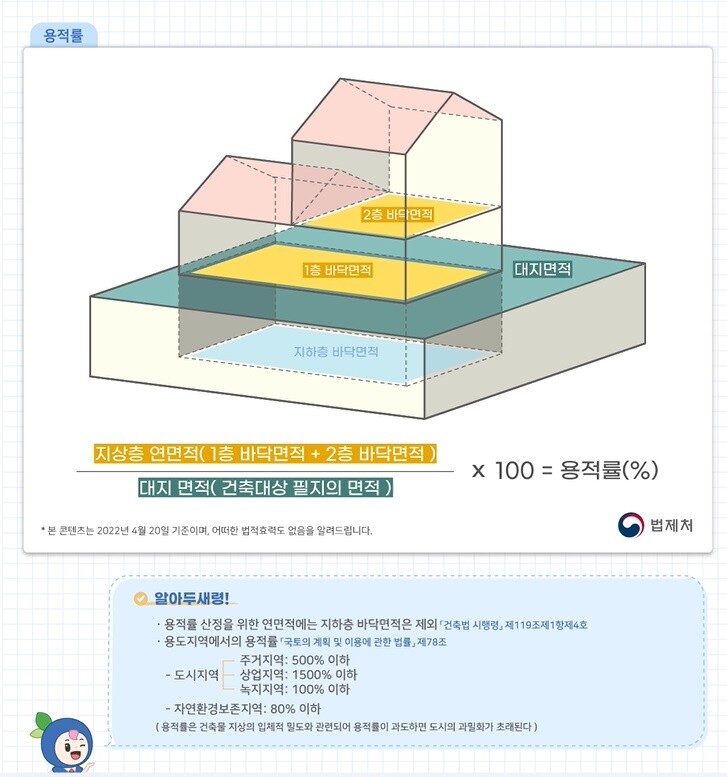 예를 들어 건축법의 경우 ‘용적률’, ‘대지면적’, ‘연면적’ 등 어려운 개념을 입체적인 건축물 그림과 색상을 활용해 쉽게 풀어냈다. 이러한 시각 자료는 법령 조문만으로 이해하기 어려운 내용을 직관적으로 전달해 법 이해도를 높이는 데 기여하고 있다.