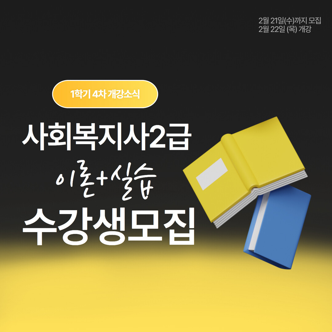 [피앤피뉴스=마성배 기자] 한국열린사이버대학교 평생교육원에서 1학기 사회복지사 2급 수강생을 모집하고 있다고 밝혔다. 2월 21일까지 4차 수강생 모집을 마감하고 2월 22일에 개강한다.
