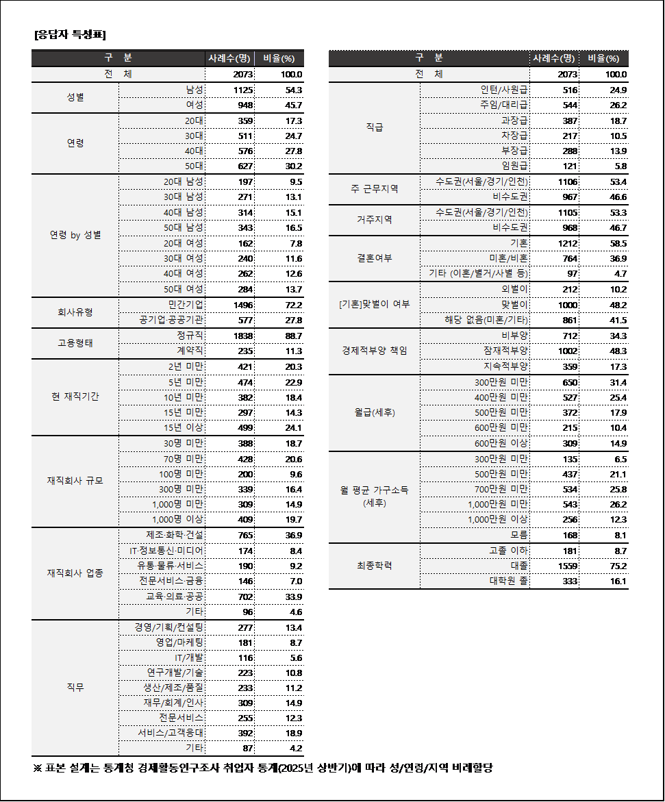 연령대별로는 50대(3.10점) 가 30대(2.84점)보다 높은 점수를 기록했으며, 근속기간이 15년 이상인 장기근속자(3.11점) 역시 2년 미만 재직자(2.88점)보다 공감도가 높았다.