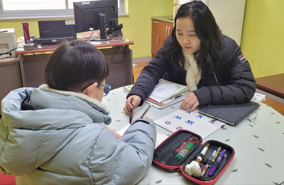<기초학력 전담교사가 학생에게 한글 교육을 실시하고 있다. 사진=광주시교육청 제공>