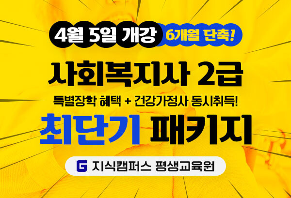 한편 지식캠퍼스평생교육원은 오는 4월 5일 개강반에 사회복지사 2급 과정과 함께 학위취득(심리학사) 과정을 함께 개강한다.