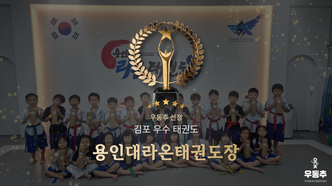 용인대라온태권도장이 우리동네사업장추천단(이하 우동추)이 선정한 '김포시 통진읍 대표 우수 태권도장'에 선정됐다. 이는 김포시 태권도장 중 우수한 교육기관임을 공식 인증받은 것이다.