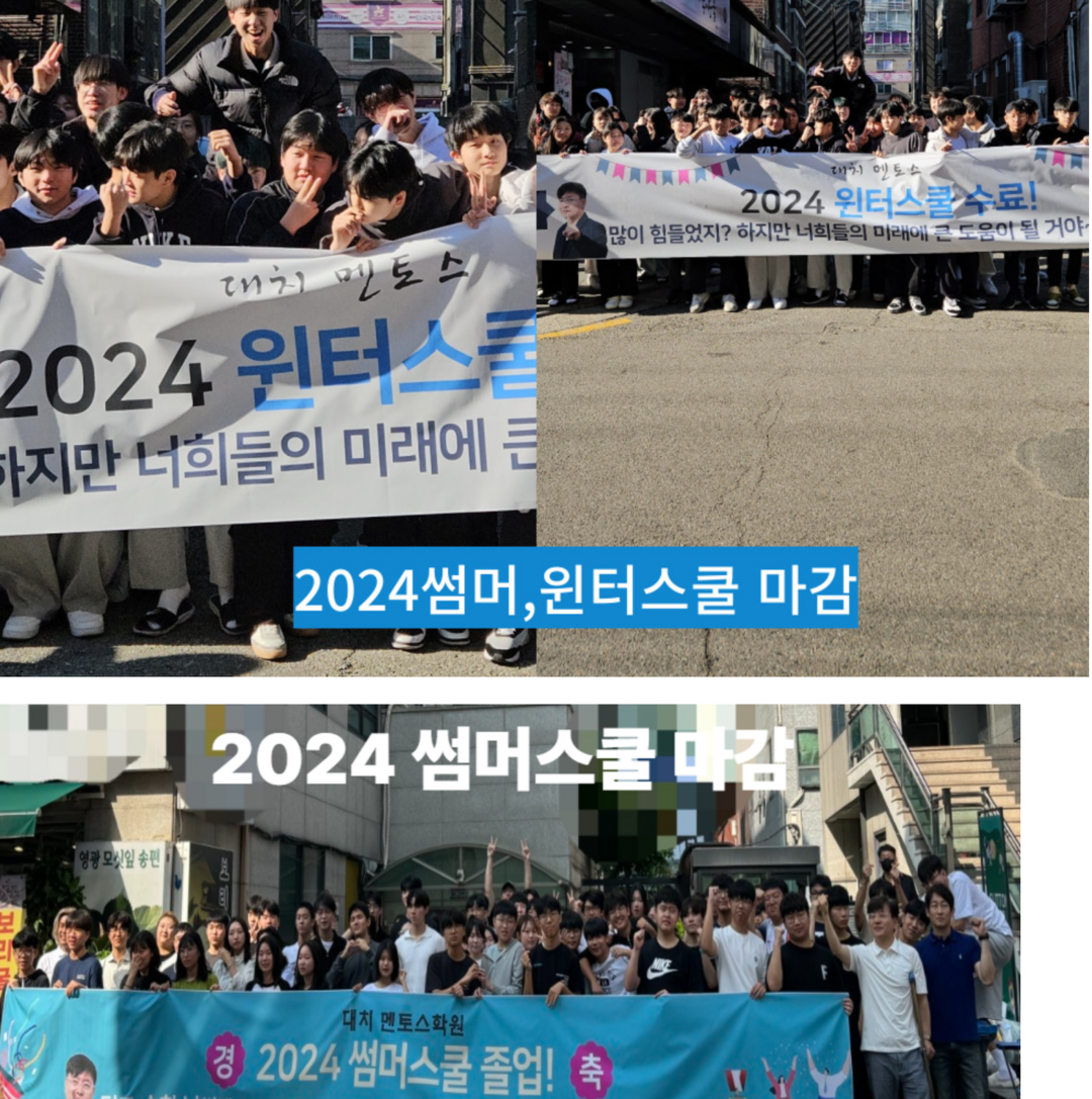 한편, 여름방학 썸머스쿨이 7년째 마감 중이다. 대상은 중학생은 중2부터 중3까지, 고등학생은고1부터 고3까지 진행하고 대치동 멘토스 소수정예 시스템을 그대로 적용한다. 1:1 셀토시스템. 5금정책. 서울대 멘토시스템 등이다.