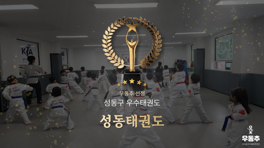 성동태권도가 우리동네사업장추천단(이하 우동추)이 선정한 '성동구 행당동 대표 우수 태권도장'에 선정됐다. 이는 성동구 태권도장 중 우수한 교육기관임을 공식 인증받은 결과다.
