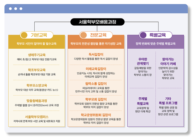 | ▲서울학부모배움과정(기본교육, 전문교육, 특별교육) 자료 제공: 서울시교육청 |