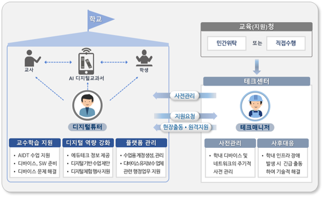 디지털튜터 1,200명 및 기술전문가(테크센터 170곳) 배치, 학교 업무 경감 기대