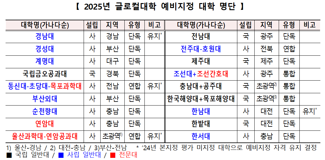 [피앤피뉴스=마성배 기자] 지역 대학의 체질을 바꾸고, 글로벌 경쟁력을 갖춘 대학으로 키우기 위한 ‘글로컬대학 프로젝트’가 2025년도 예비지정 결과를 발표했다.