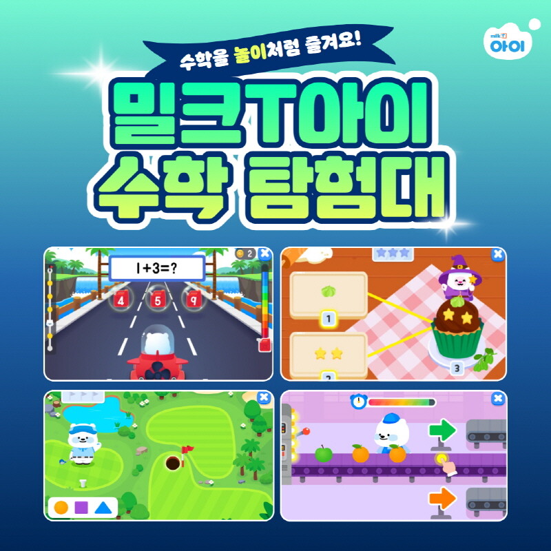 밀크T ‘수학 탐험대’는 1부터 100까지 숫자를 세는 것부터 두 자릿수의 덧셈과 뺄셈을 익히고, 시계 읽는 법까지 수학의 5대 영역을 모두 다룬다. 또한 일방적인 학습 방식이 아니라, 숫자를 써보고 퍼즐을 맞추는 등 다양한 참여 활동으로 몰입도를 높였다.