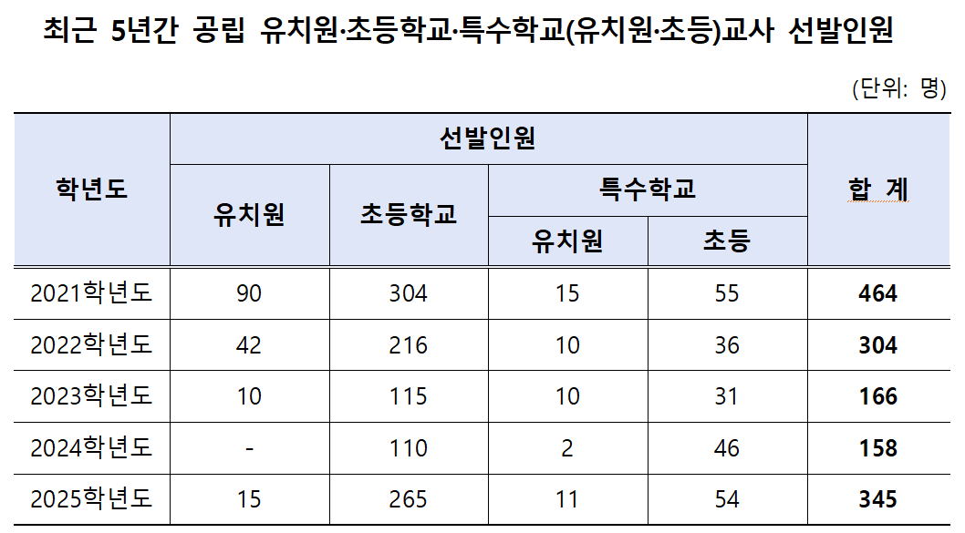 2025학년도 유·초·특수학교 교사...총 345명 선발