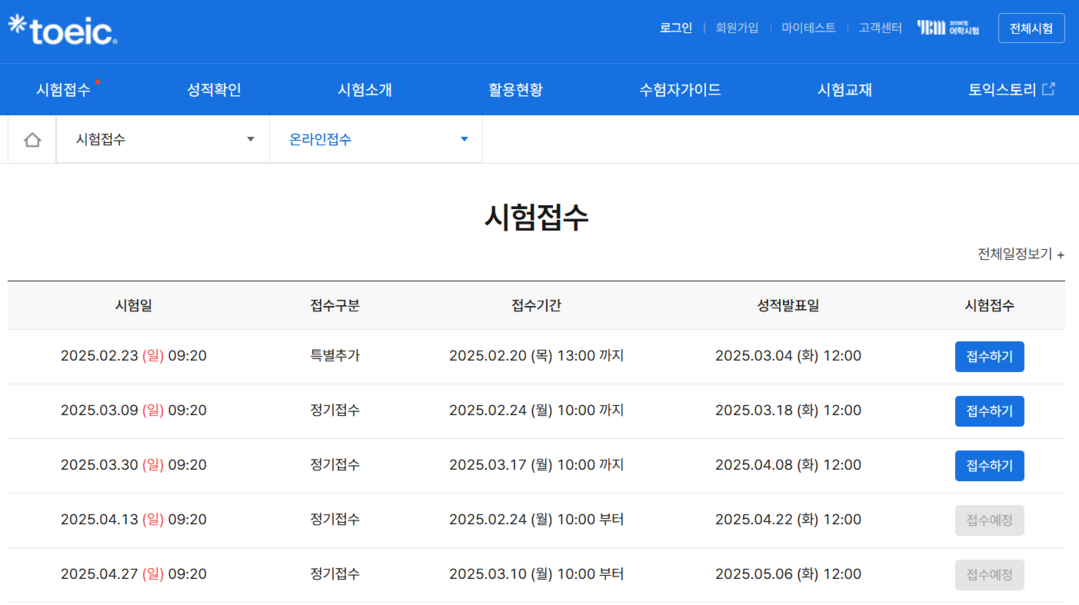 토익 공식 홈페이지에서 2월 23일(일), 3월 9일(일), 30일(일) 시험 접수가 진행 중이다.