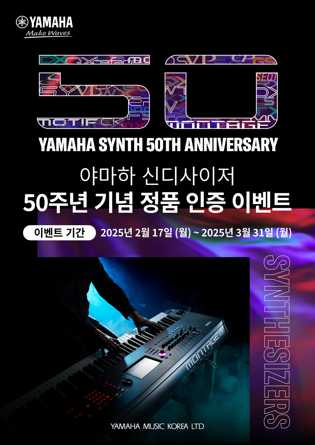 이번 이벤트는 혁신적인 성능과 디자인으로 반세기에 걸쳐 뮤지션들의 사랑을 받아온 야마하의 신디사이저 출시 50주년을 기념하기 위해 준비되었다. 2024년 9월부터 행사가 종료되는 3월 31일까지 야마하 신디사이저, 스테이지 피아노 및 건반 모델을 구매한 고객들은 누구나 참여할 수 있다.