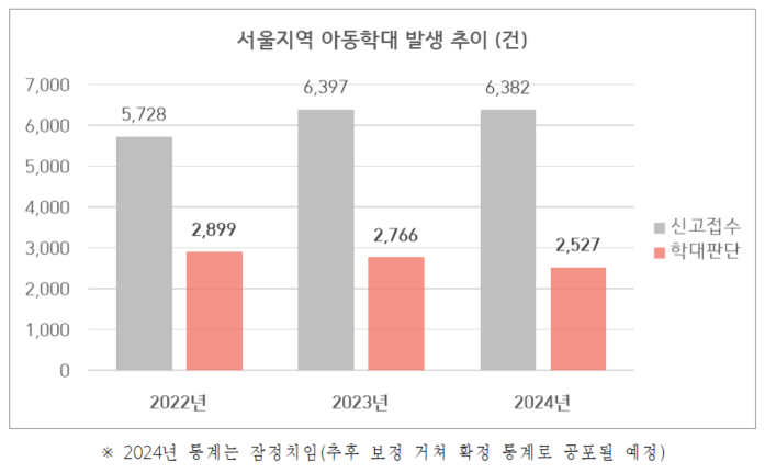 최근 아동학대 신고 건수는 2년 연속 연간 6천 건을 넘기며 증가 추세를 보이고 있지만, 정작 실제 학대로 판정되는 사례는 줄어들고 있는 상황이다. 서울시는 이 같은 변화가 아동학대에 대한 사회적 인식과 민감도가 높아진 데 따른 결과로 분석하고 있다.