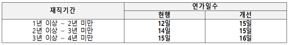 저연차 공무원의 연가일수, 12~15일→15~16일