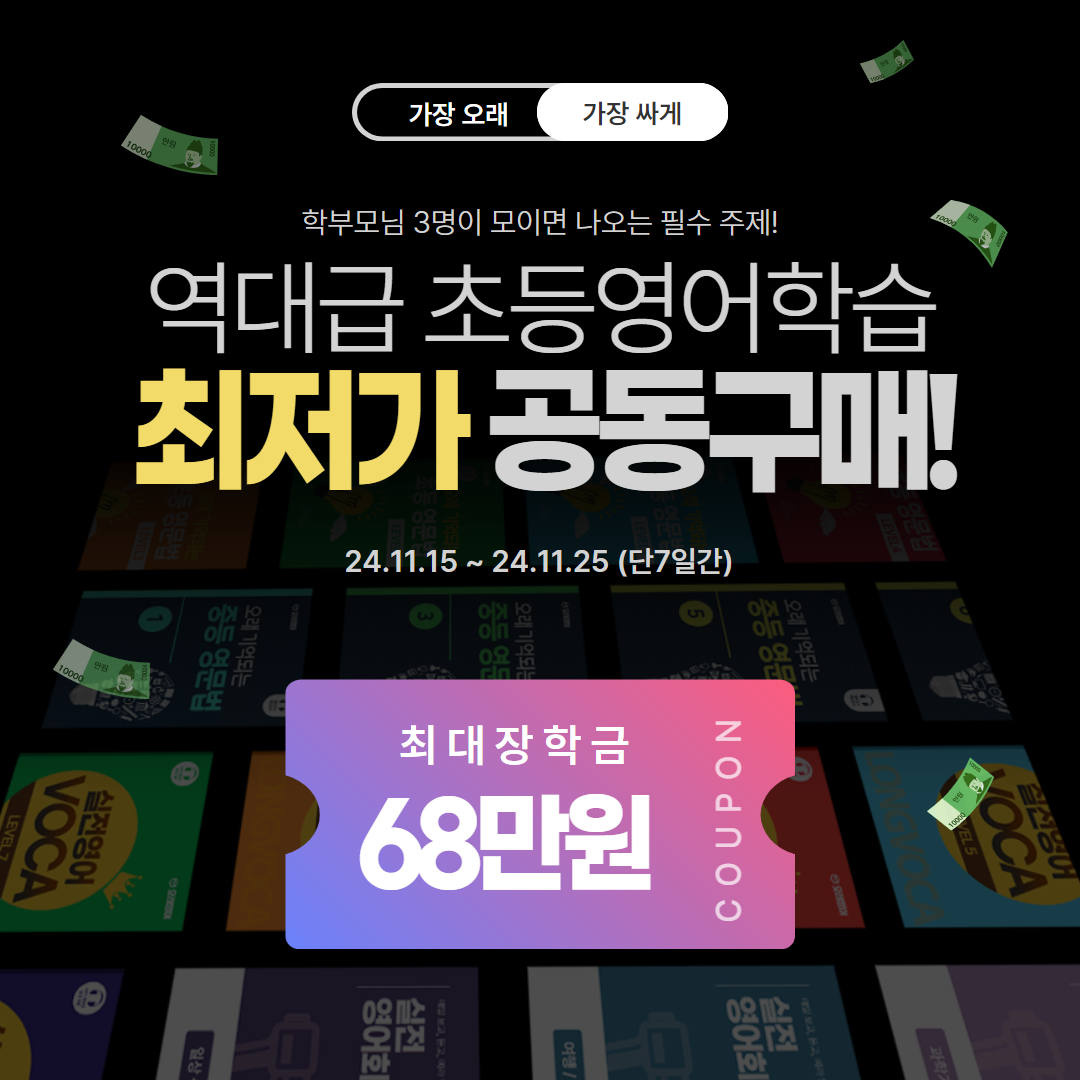 이번 행사는 초등학생영어 학습에 있어 실질적인 영어 실력 향상과 자기주도 학습 습관 배양 등 학부모의 걱정을 해소할 수 있을 것으로 보인다. 영어홈스쿨링을 실천하고자 하는 부모님들은 이번 공동구매를 통해 경제적인 부담을 줄이고, 질 높은 영어 학습 자료를 손쉽게 확보할 수 있다.