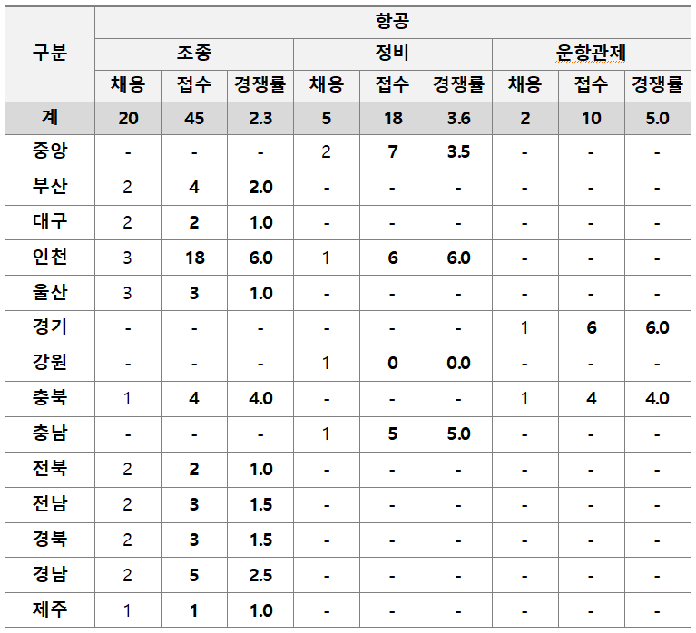 2024년 소방공무원(항공분야) 채용시험 '원서접수 결과' 공고