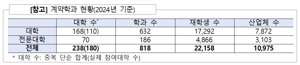 ‘계약학과’는 대학과 기업이 협약을 맺고 학생 선발과 교육과정 설계부터 협업해 산업체가 필요로 하는 인재를 양성하는 제도로, 이를 발전시킨 ‘계약정원’은 기존 학과를 활용해 새로운 학과 설립 없이 산업체 맞춤형 교육과정을 운영할 수 있도록 2023년에 도입됐다.