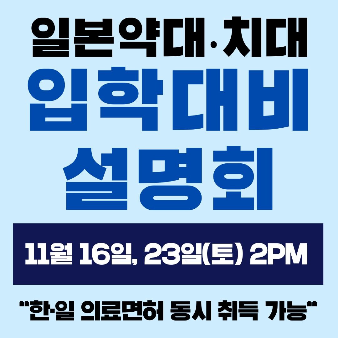이번 설명회는 일본 약대 및 치대 진학을 희망하는 학생과 학부모를 대상으로, 일본 대학 입시 제도에 대한 정확한 정보와 함께 빠르고 확실한 입학 및 면허 취득 방법을 소개할 예정이다.