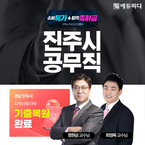 종합교육기업 에듀피디가 11월 8일(토) 필기시험이 예정된 진주시 공무직 공개경쟁채용에 맞춰 ‘진주시 지역상사회의 이해’ 기출복원 문제를 제공하는 ‘필기·면접 패키지 인강’을 오픈하고 수강생을 모집한다고 밝혔다.