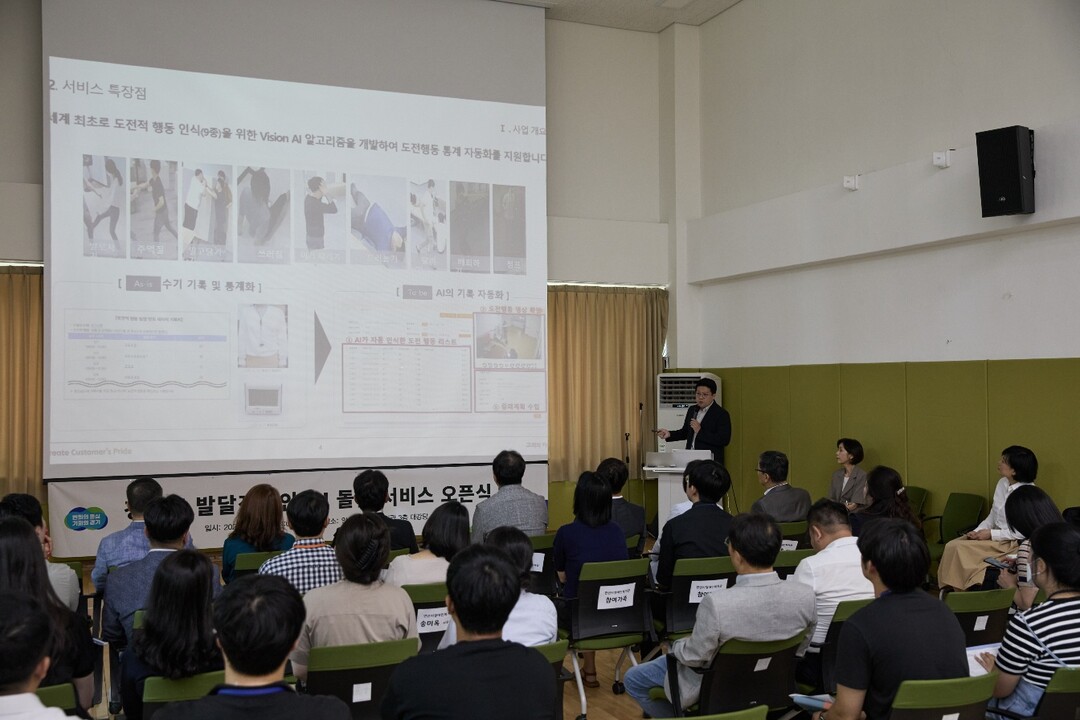 이날 오픈식에서는 발달장애인을 위한 AI 돌봄 서비스 지원 사항과 시연을 통해 사업 내용을 소개하고, 돌봄 교사와 발달장애인 가족들의 애로사항과 사업 관련 의견을 듣는 시간이 마련됐다.