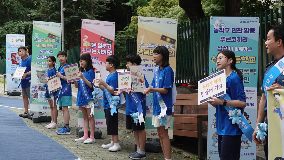 동작구의 이번 시도는 자치구·학교·기업·NGO가 함께 만든 최초의 연계형 모델이라는 점에서 의미가 크다. 학생들은 117(학교폭력 신고), 1588-9128(푸른나무재단 상담전화), ‘푸른코끼리 앱’ 등 구체적 신고 경로를 학습하고, 친구를 돕는 실천 행동을 일상 규범으로 익혔다.