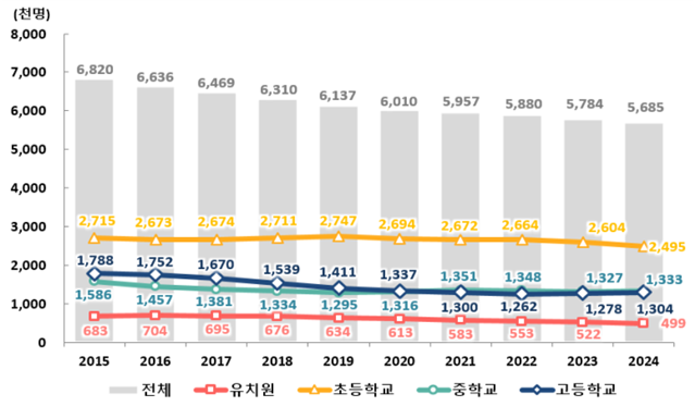 교육부와 한국교육개발원이 전국 유·초·중등 및 고등교육기관 등의 기본 사항을 조사한 ‘2024년 교육기본통계’ 조사 결과를 30일 발표했다.