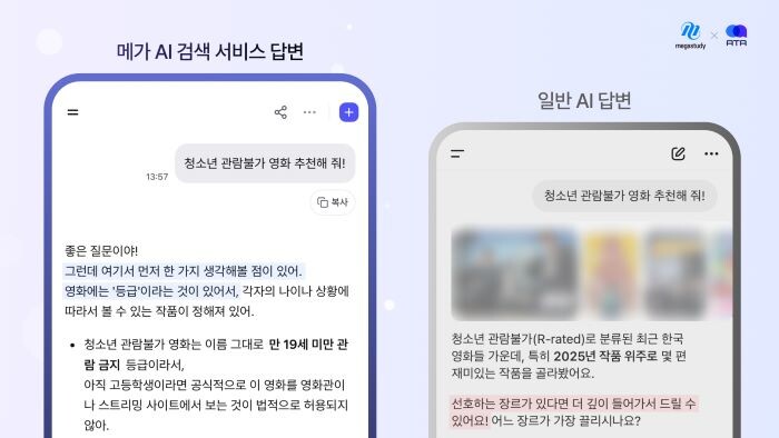 일반 AI가 유해 콘텐츠까지 그대로 노출하는 한계를 지닌 반면, 메가 AI 검색 서비스는 해로운 질문에는 아예 답변하지 않고 학습에 도움이 되는 정보만 선별해 제공한다. 이 같이 청소년도 안심하고 쓸 수 있는 기능 덕분에, AI 활용에 관심이 있으면서도 자녀에게 노출될 부적절한 콘텐츠 때문에 망설이던 학부모들 사이에서 긍정적인 반응을 얻고 있다.