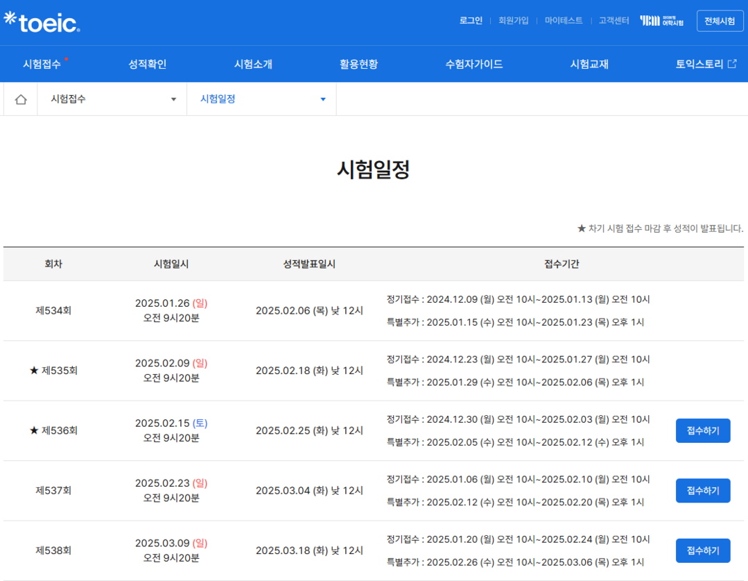 한편, 현재 2월 15일(토), 2월 23일(일), 3월 9일(일) 시행되는 토익 시험 접수가 진행 중이다. YBM 토익 공식 홈페이지를 통해 접수 가능하다.