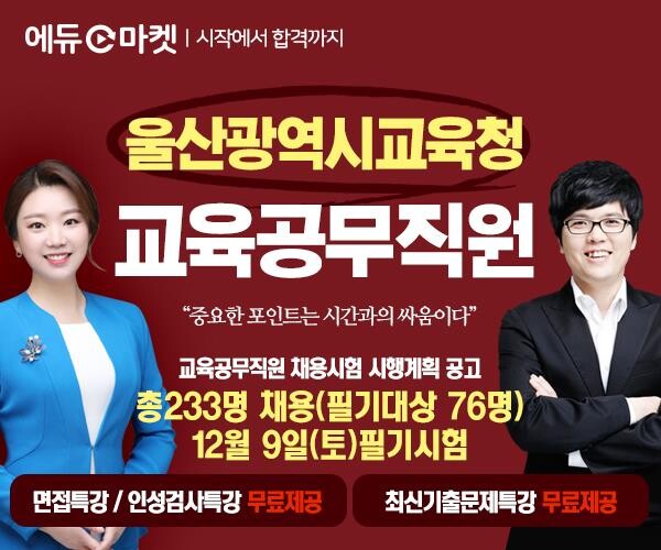 에듀마켓은 울산광역시교육청 교육공무직 시험을 대비하기 위한 단기합격반을 오픈하여 서비스하고 있으며 오픈 기념으로 인성검사특강, 면접특강도 무료로 제공한다.