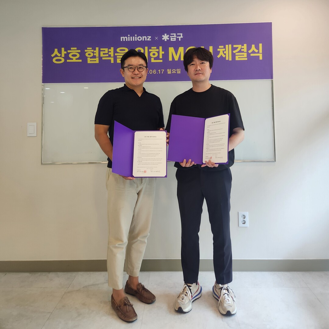 양사는 이번 업무협약으로 밀리언즈 전국 860개 제휴 독서실, 스터디 카페 운영자 대상 구인구직 플랫폼 ‘급구’의 특별 혜택 제공 외, 밀리언즈 회원 대상 ‘급구’ 서비스 안내와 ‘급구’ 플랫폼 내 1020 회원 대상 밀리언즈 서비스 안내 등 기타 사업기회 모색을 위해 협력할 예정이다.
