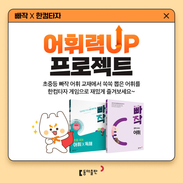 [피앤피뉴스=마성배 기자] 동아출판의 초중고 국어 문제집 <빠작>이 한글 타자 연습 프로그램 ‘한컴타자’와 제휴를 맺고 프로모션을 진행한다.