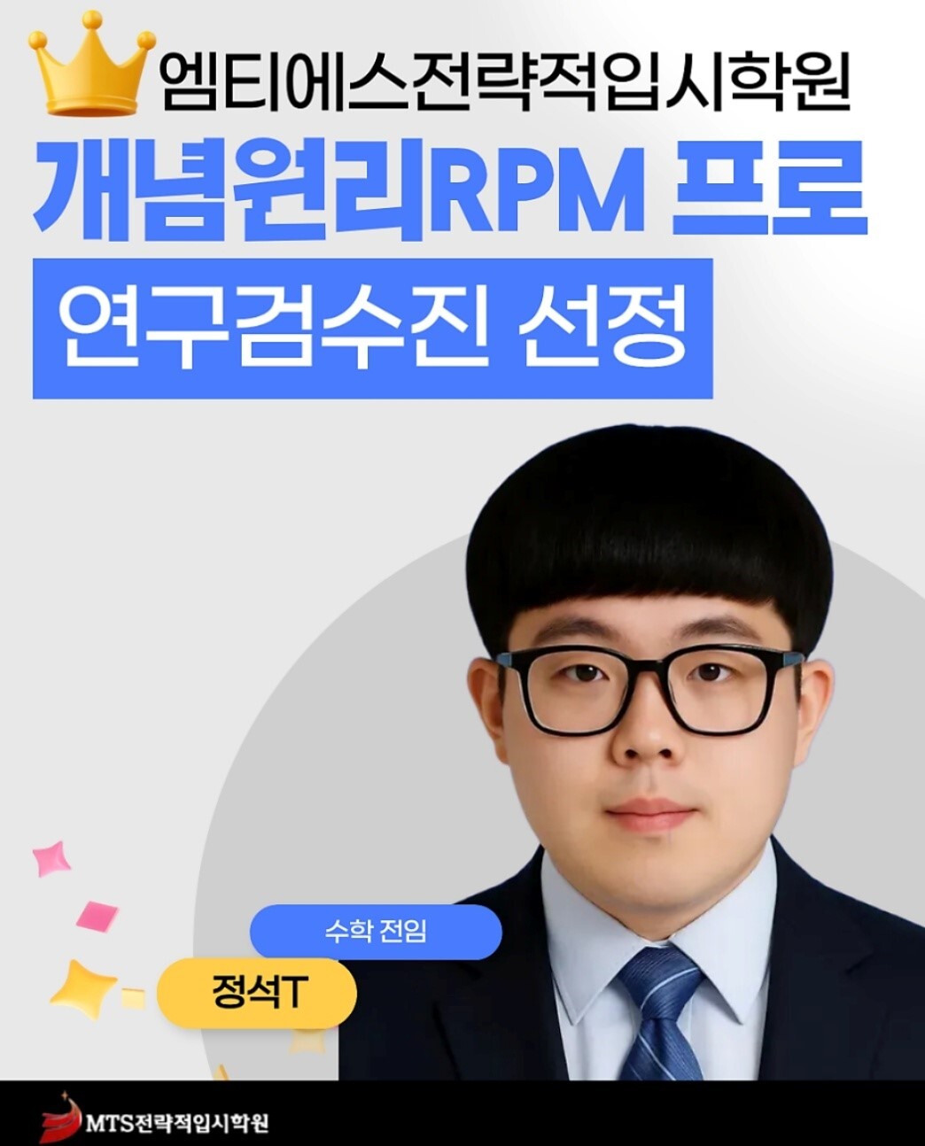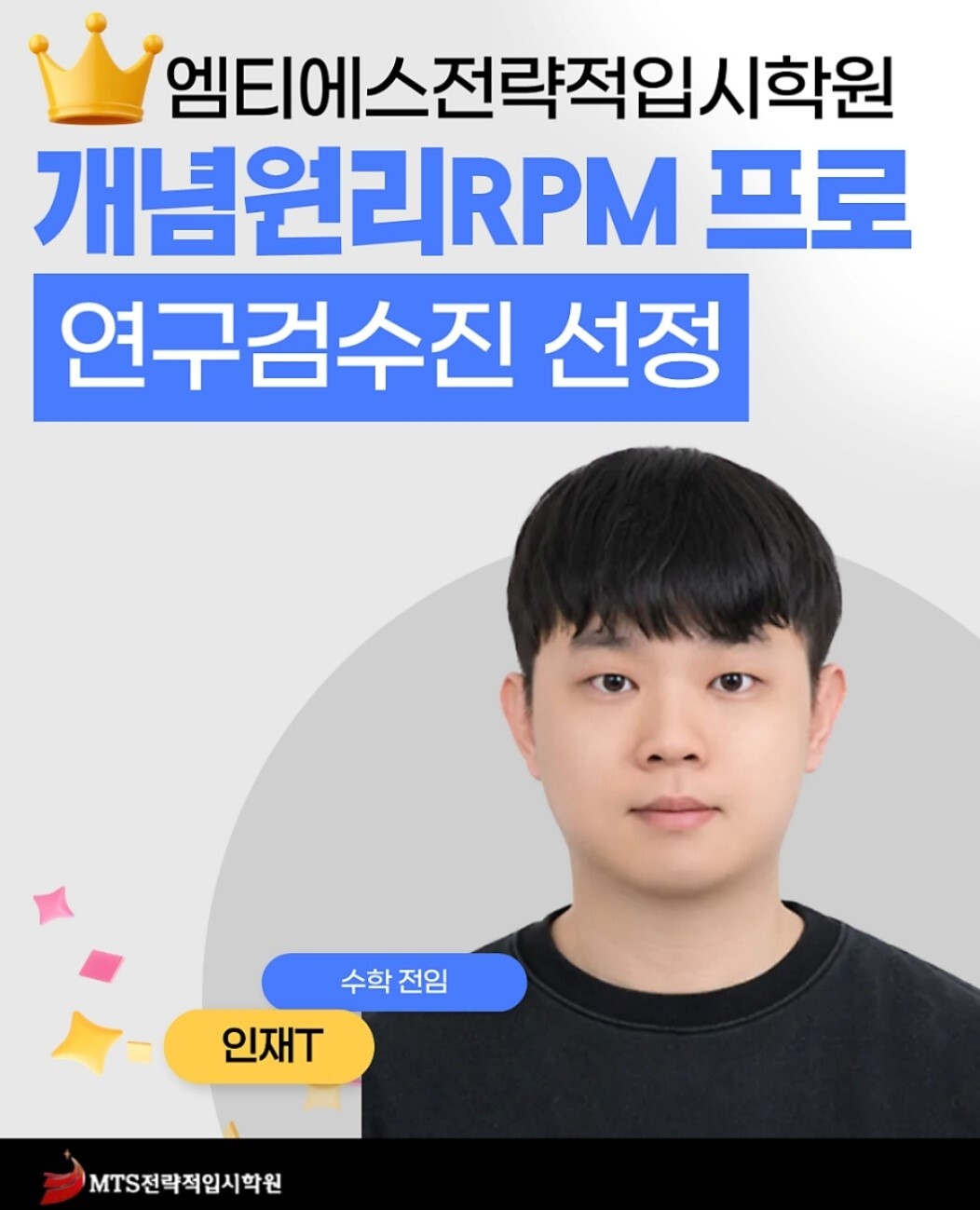 성남 지역 대표 입시 전문 기관 엠티에스전략적입시학원(MTS)은 소속 강사 인재T(인재쌤)와 성준T(성준쌤)이 국내 대표 수학 학습 교재인 ‘개념원리 RPM 프로’의 연구 검수진으로 공식 선정되었다고 밝혔다.