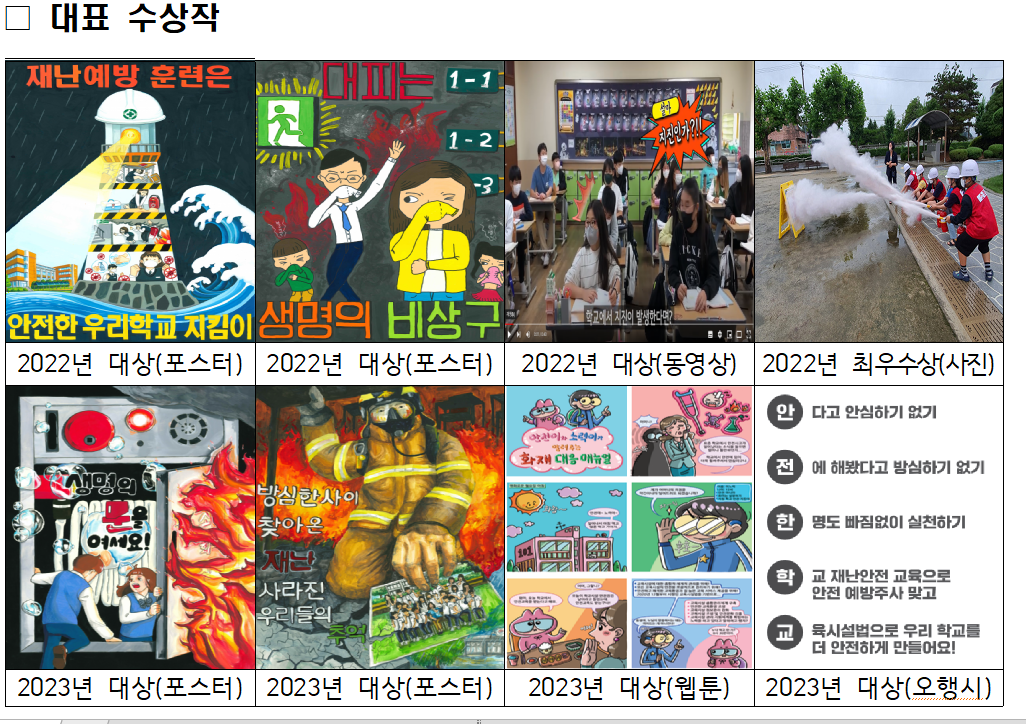 교육부 전진석 교육자치협력안전국장은 “이번 공모전을 통해 학교 안전에 대한 국민의 관심을 높이고, 안전한 교육 환경 조성에 기여하길 바란다”며 “학교 안전 문화가 조성될 수 있도록 많은 관심과 참여를 부탁드린다”고 전했다.