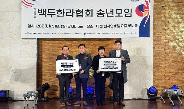 이번 기부 행사는 18일 열린 (사)백두한라협회 송년모임에서 진행되었다. 송년모임에는 하이브파트너스와 베어비의 대표들을 비롯해 각계각층의 관계자들이 참석했다. 행사에는 로봇개, 휴머노이드와 함께하는 어린이댄스, 탈북민 가정자녀 장학금 전달식, 예술단 공연 등 다채로운 프로그램이 준비되어 있었다. 강순희 회장은 "힘든 시기에 지역 사회에 기여하는 마음으로 참여해준 여러 기업들에 진심으로 감사드리며 우리가 힘을내어 더욱 봉사하고 좋은일에 앞설테니 앞으로도 함께해달라"고 전했다.