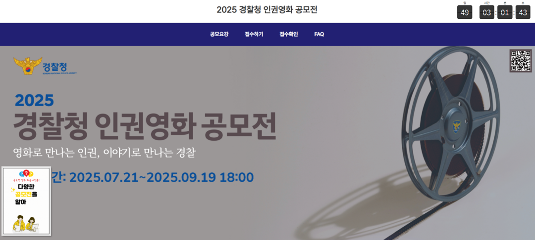 공모작 접수는 영화제 공식 누리집(https://policemovie.spectory.net/policemovie)을 통해 가능하며, 포스터 등에 삽입된 QR코드를 통해서도 접속할 수 있다. 선정된 수상작은 오는 12월 예정된 ‘경찰 인권주간’ 행사에서 상영되며 시상도 함께 진행될 예정이다.