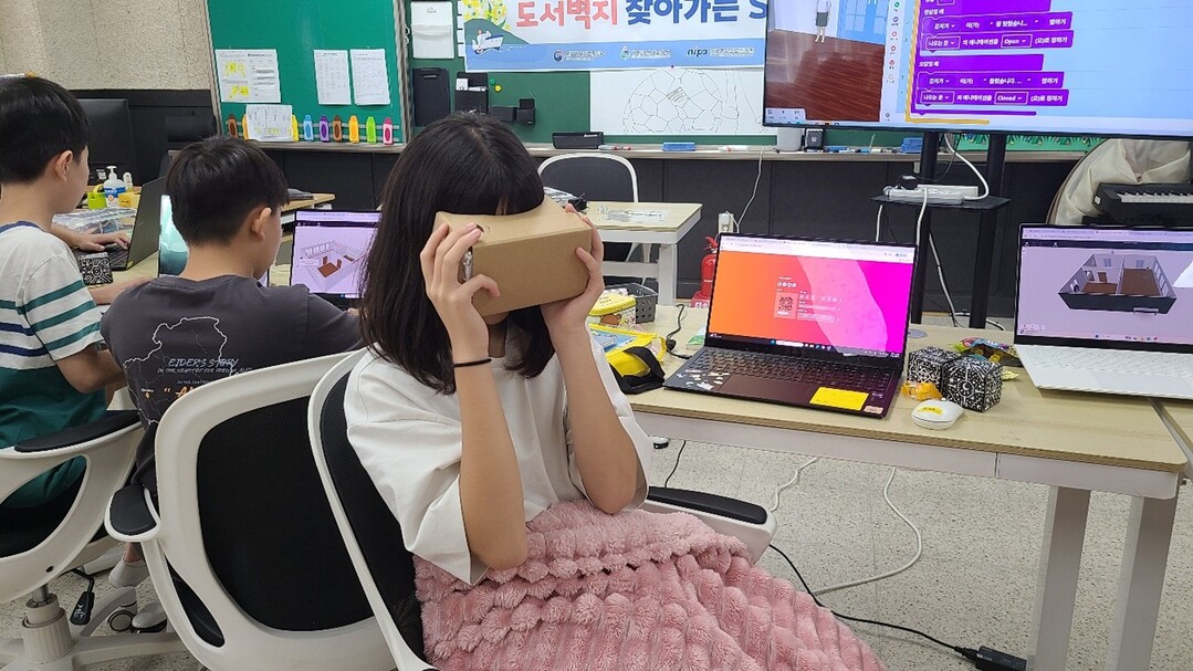 이어 둘째 날에는 역사 전시관을 구현하고, 전시관을 실제로 관람하는 상황을 VR과 AR로 체험하며, 기술을 실생활 콘텐츠에 접목하는 경험을 쌓았다. 총 6명의 5~6학년 학생이 참여한 이번 과정은 단순한 체험을 넘어 창의적 문제 해결 능력과 디지털 역량 강화를 목표로 설계되었다.