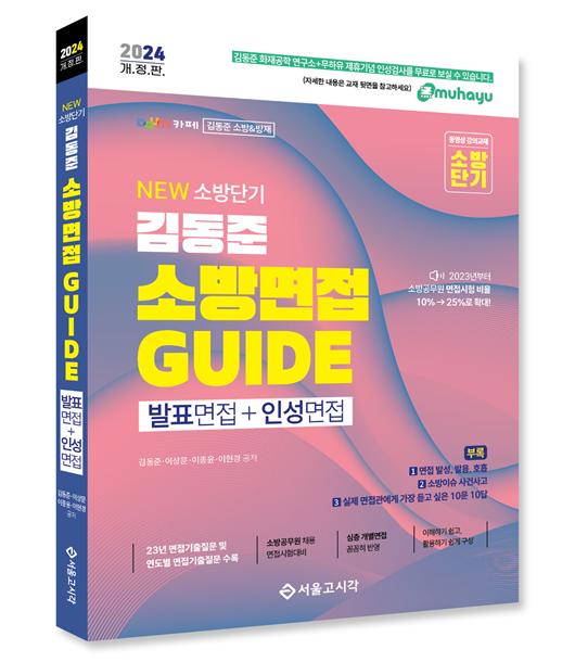 수험서의 대표주자인 도서출판 서울고시각은 2024년 소방직공무원 면접시험을 준비하는 수험생을 위해 ‘2024 NEW 소방단기 김동준 소방면접 GUIDE (발표면접+인성면접:인성검사 무료테스트)’를 출간했다.