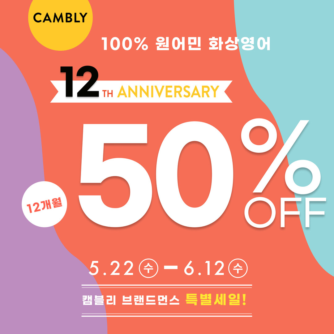 글로벌 원어민 화상영어 캠블리(CAMBLY)가 12주년을 맞아 50%를 할인하는 브랜드먼스(Brand Month) 이벤트를 실시하고 있다.