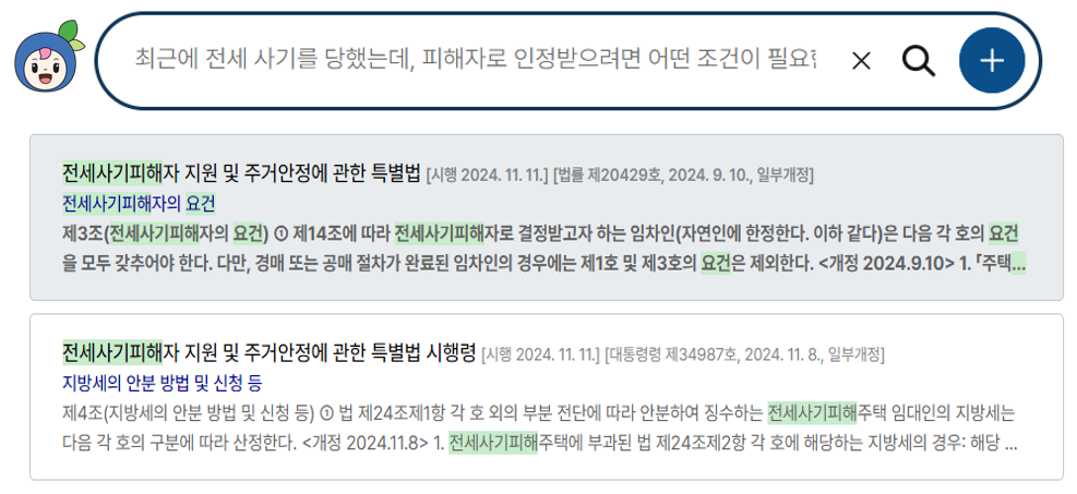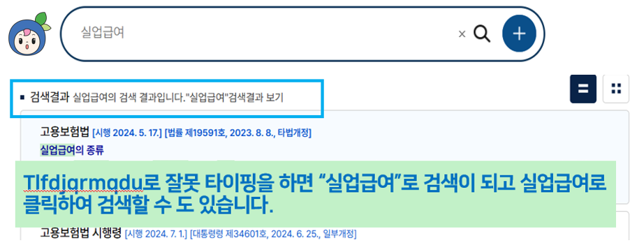 뿐만 아니라, 한글을 영문으로 잘못 입력하거나 철자가 틀리는 경우에도 자동으로 오타를 수정해 정확한 법조문을 제시하는 기능이 추가되어, 검색 과정에서의 불편함을 대폭 줄였다.