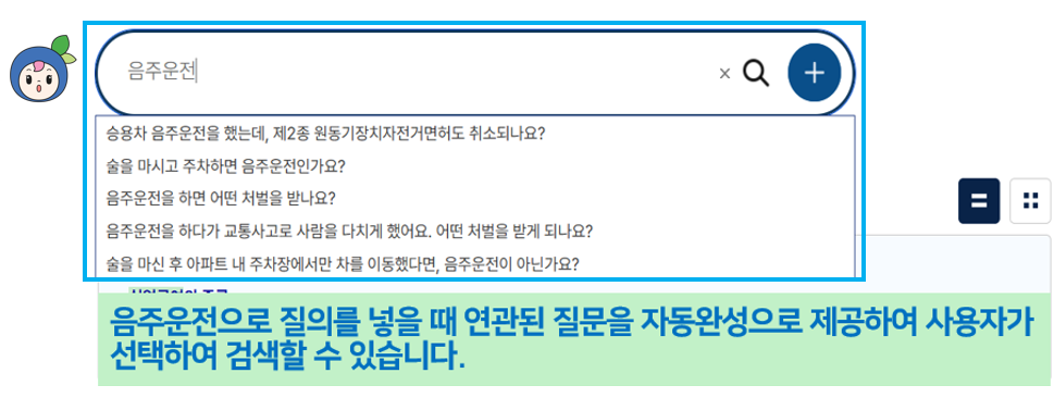 또한, 생활 속에서 자주 묻는 질문 530개를 선별해 18개 주요 생활 분야로 분류하고, 검증된 답변을 함께 제공한다. 검색창에서는 일부 키워드만 입력해도 관련 질문이 자동완성되며, 필요한 정보를 더욱 신속히 찾을 수 있다.