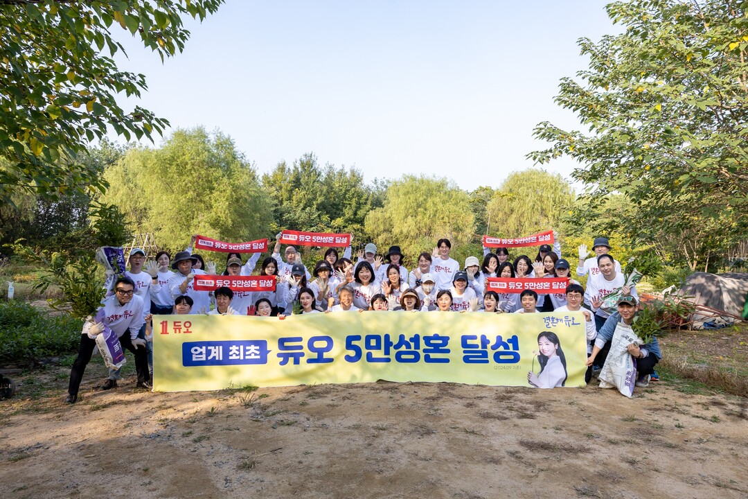 듀오는 10월 16일 서울 마포구 노을공원에서 임직원 50여명과 함께 ‘누적 성혼수 5만명 달성’을 기념하여 나무 심기 봉사활동을 진행했다고 17일 밝혔다.