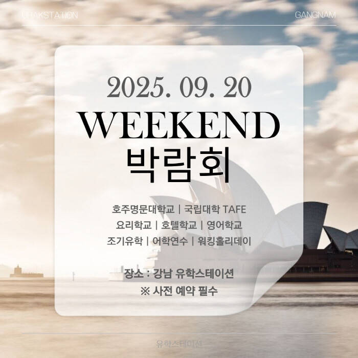 호주 유학을 준비하는 학생과 학부모들을 위한 2025 호주유학 주말박람회가 오는 9월 20일 유학스테이션 강남지사에서 개최된다.