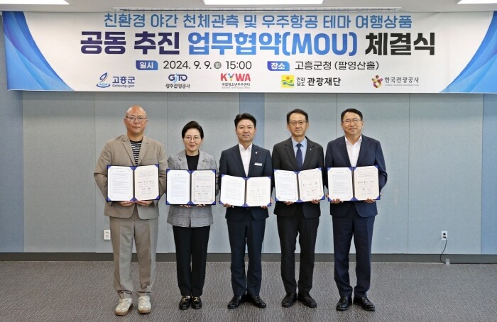 이날 업무협약식에는 우주센터, 고흥군, 한국관광공사 광주전남지사, 광주광역시관광공사, 전라남도관광재단이 참여했다.