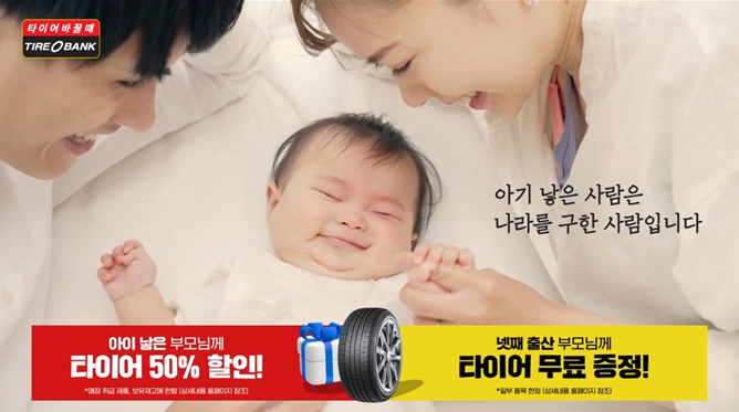 타이어뱅크는 출산장려 캠페인을 위해 올 연말까지 약 1천억 원 규모의 예산을 투입해 저출산 위기를 타개하고 대한민국의 발전을 위해 힘을 보탤 예정이다.