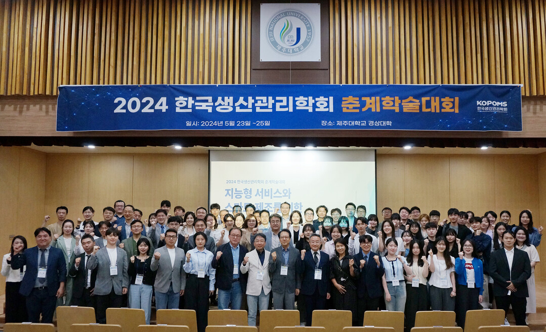 <사진설명 : 제주대학교에서 열린 한국생산관리학회 주관 ‘2024년 한국생산관리학회 춘계학술대회’에서 참석자들이 단체 기념 촬영을 하고 있다.>