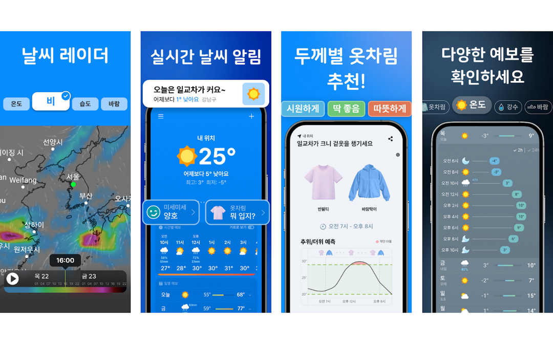 | AI 분석을 통한 국내 무료 날씨 앱 '날씨날씨' 기상청 어플보다 높은 순위 기록