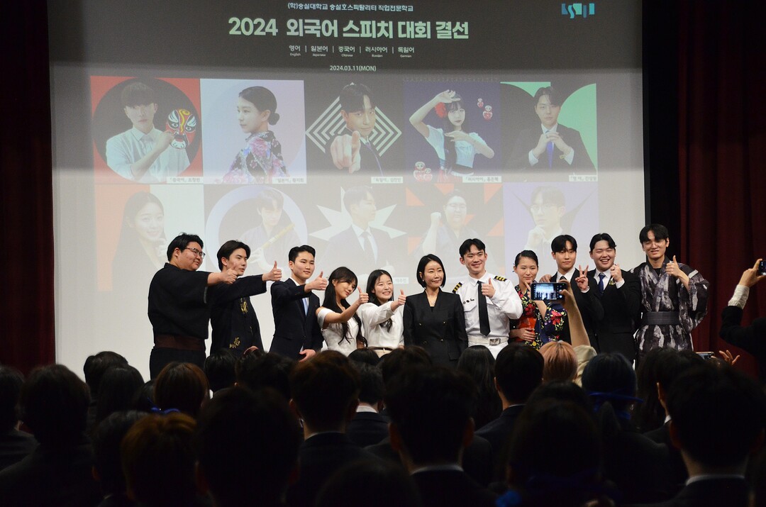 [피앤피뉴스=마성배 기자] 국내 최초 학교법인 (학) 숭실대학교 숭실호스피탈리티는 모든 전공을 대상으로 “10년 후 나의 모습”이라는 주제로 진행한 ‘2024 외국어 스피치 대회’ 결선 진출자 10명과 함께 숭실대학교 한경직기념관에서 진행했다고 12일 밝혔다.